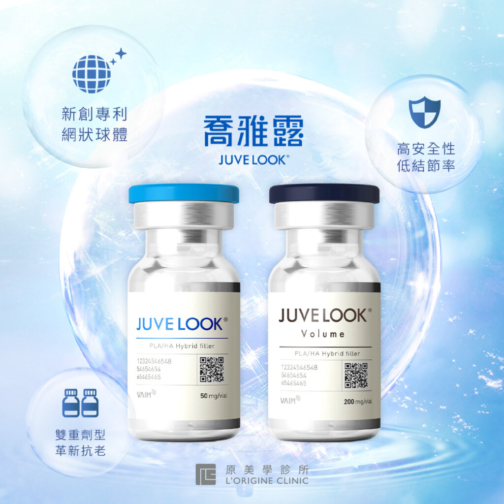 如果你正為細紋、乾燥、毛孔粗大、肌膚鬆弛等初老現象煩惱,Juvelook 是您最好的選擇。它結合了玻尿酸立即補水與PLLA促進膠原蛋白增生的雙重效果,不只讓肌膚水潤有彈性,更能從底層緊緻輪廓、細緻膚質,特別適合輕熟齡保養與初期老化修護。