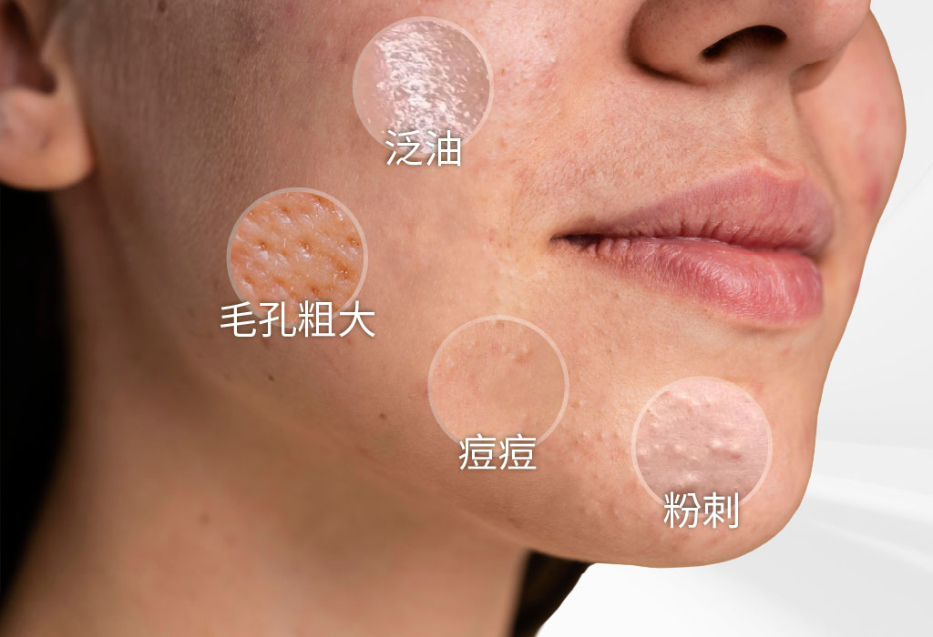• 皮脂分泌旺盛 → 容易泛油、毛孔粗大
