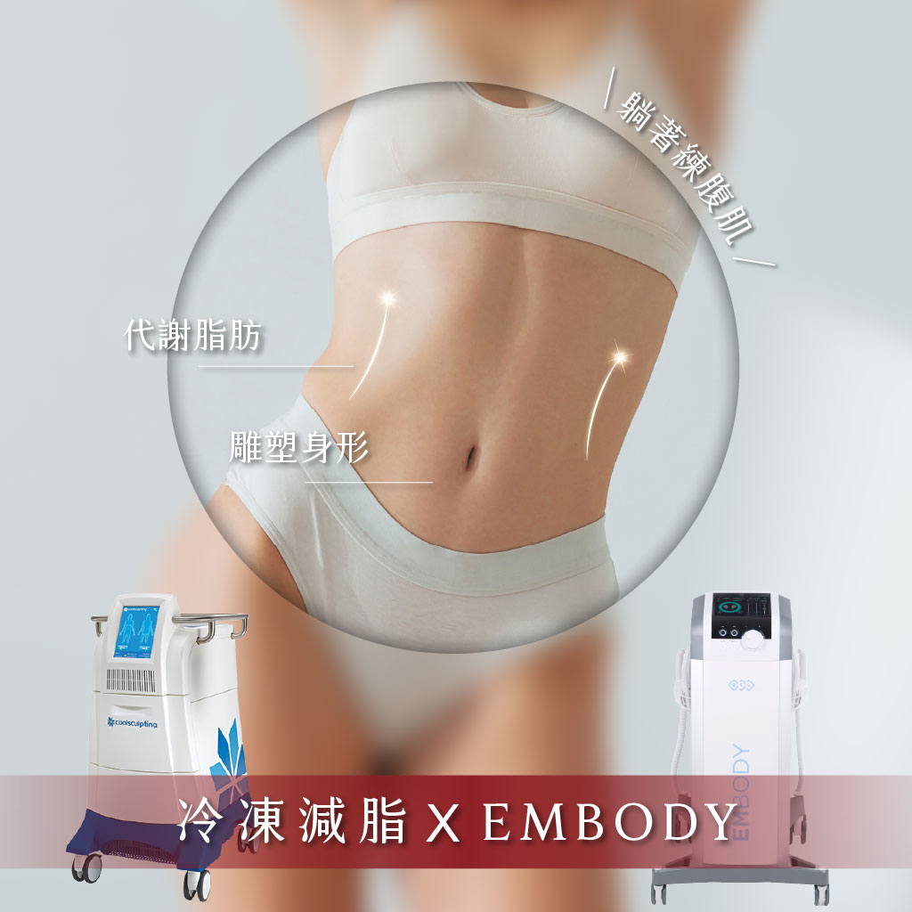 EMBODY為非侵入式體雕療程,運用高強度聚焦電磁能量(HIFEM)深入肌肉層,每次療程高達兩萬次的超極限肌肉收縮。這種深層刺激可有效提升肌肉密度與力量,同時促進脂肪分解與代謝。適用於腹部、臀部等部位,特別適合希望雕塑曲線、改善鬆弛、產後腹直肌或強化核心肌群者,輕鬆打造緊實有型的體態。